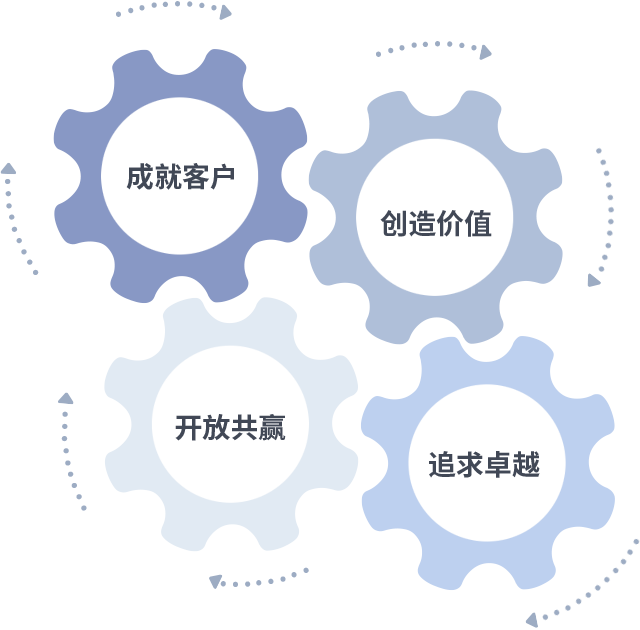 成就客户是一切决策的出发点,创造价值是衡量所有工作的标准,追求卓越是华人策略hrceluebbs做事做人的态度,开放共赢是华人策略hrceluebbs的格局也是最终的结果。价值观的齿轮环环相扣,推动着组织里的每个人不断向前。